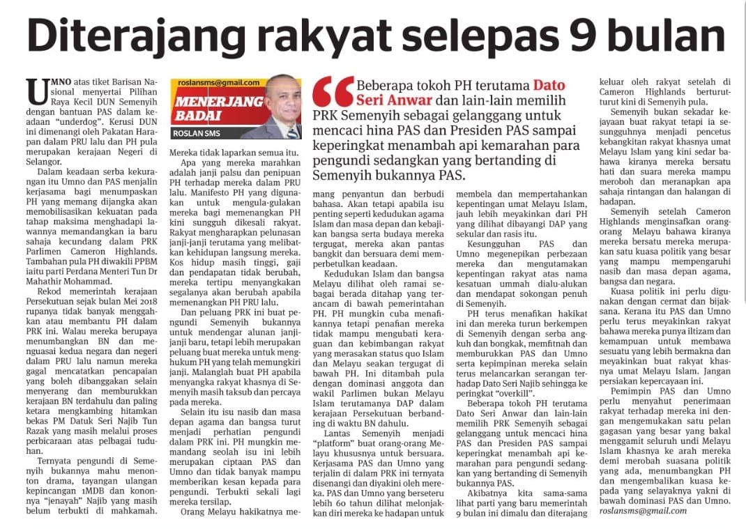 memungkiri janji. Malanglah buat PH apabila menyangka rakyat khasnya di Semenyih masih taksub dan percaya pada mereka.