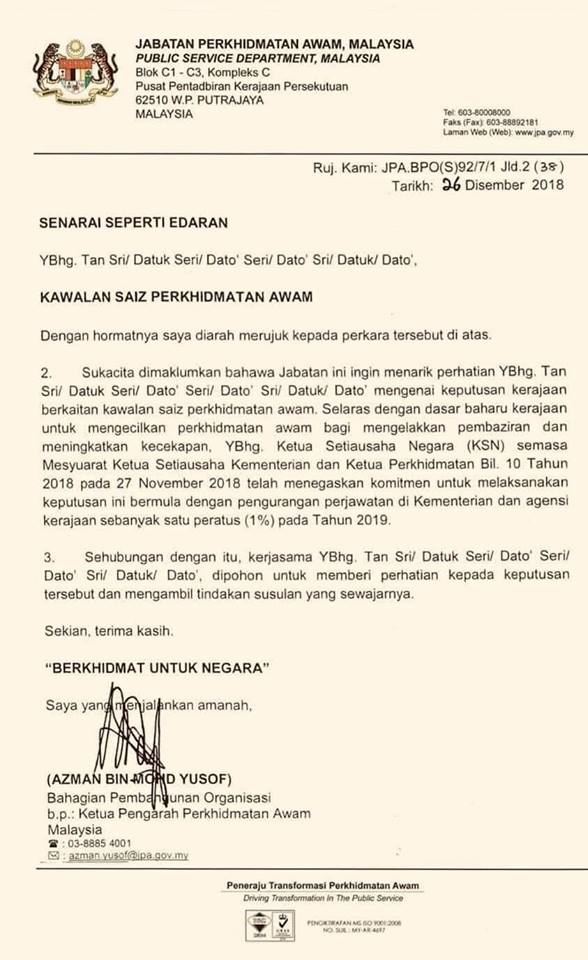 Kita tenguk bagaimana dasar penguncupan penjawat awam akan dan telah di laksanakan oleh kerajaan Pakatan Harapan...