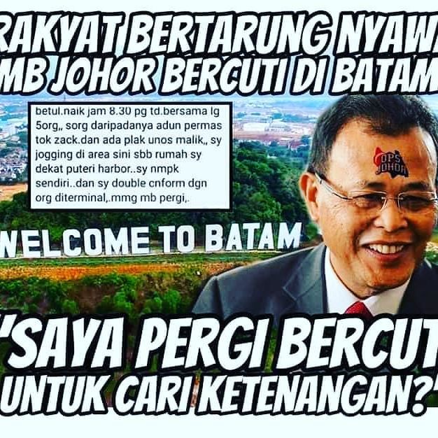 Di saat rakyat Johor bertarung dengan maut, Menteri Besar Johor dengan senang hati pergi ke Batam...