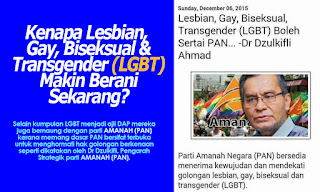 Kerana mendapat sokongan politik, maka kumpulan LGBT telah merasa diri mereka selamat. Itulah apa yang diusahakan oleh AMANAH (PAN) untuk kumpulan LGBT.