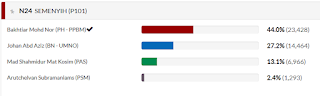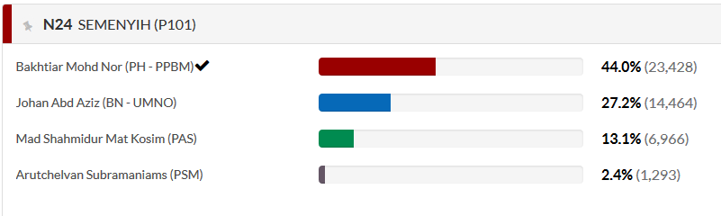 Keputusan PRU-14 lalu calon PH mendapat 23,428 kini merosot teruk.