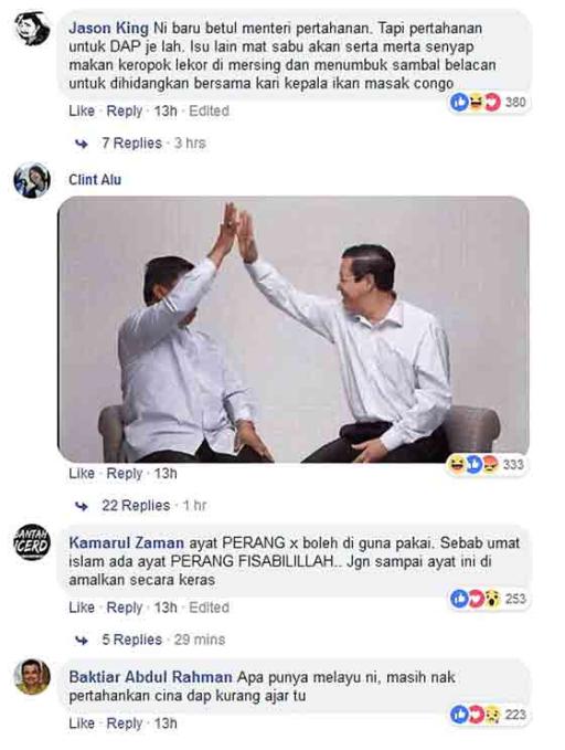 “Saya tidak ikuti apa kenyataannya. Guan Eng mengatakan perang politik, macam kita isytihar perang rasuah dalam politik,” katanya pada sidang media selepas hadir ke Bicara Minda bersama Menteri Pertahanan di sini, hari ini.