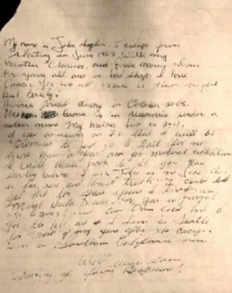 Surat itu menyatakan bahawa Frank Morris dan Clarence Anglin masing-masing meninggal pada tahun 2005 dan 2008.