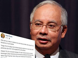 "Alasan PH, pengurangan bayaran bulanan dari RM1,500 kepada RM1,000 dapat menjimatkan Felda sebanyak RM167 juta setiap tahun. Apakah penjimatan RM167 juta setahun berbanding kenaikan hutang RM86 bilion dalam tempoh 10 bulan PH mengambil alih? Ataupun RM82 bilion yang dijarah dari Petronas tahun lepas.