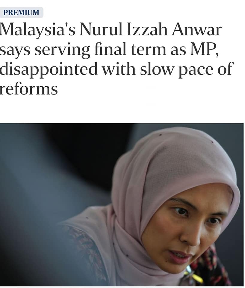 Dalam satu wawancara dengan The Straits Times Singapore ahli Parlimen Permatang Pauh yang juga anak "bakal PM" Malaysia Nurul Izzah dilaporkan berkata: