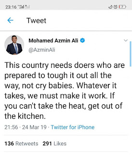 (Maksud saya bekerja untuk seorang bekas diktator yang telah banyak merosakkan bukan hanya kehidupan kita tetapi sistem Bukkannya mudah)