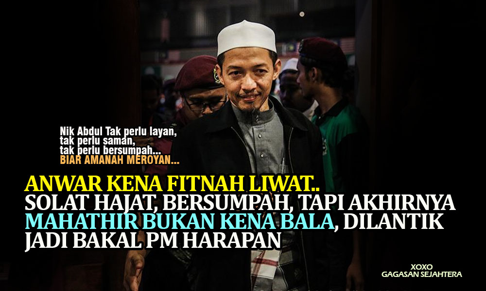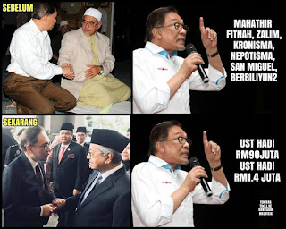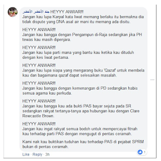Kerana merasa diri sudah cukup kuat dan gagah, maka dipersetankan etika dan moral membuat dakwaan keji. PAS dibelasahnya tanpa kasihan dan pertimbangan adil. Tidak cukup dengan itu Presiden PAS, Dato' Seri Tuan Guru Abdul Hadi Awang turut dijelikkannya secara nista konon berkawan dengan pencuri.