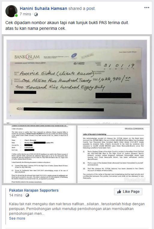 Dan kalau nak dedah cek pun jangan padam nombor cek. Itu bukan namanya pendedahan.