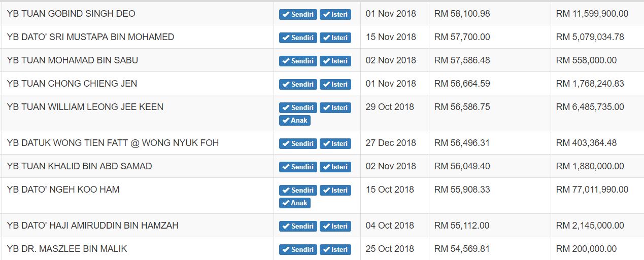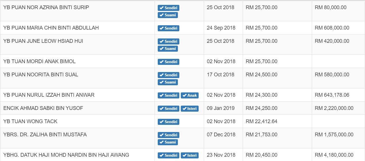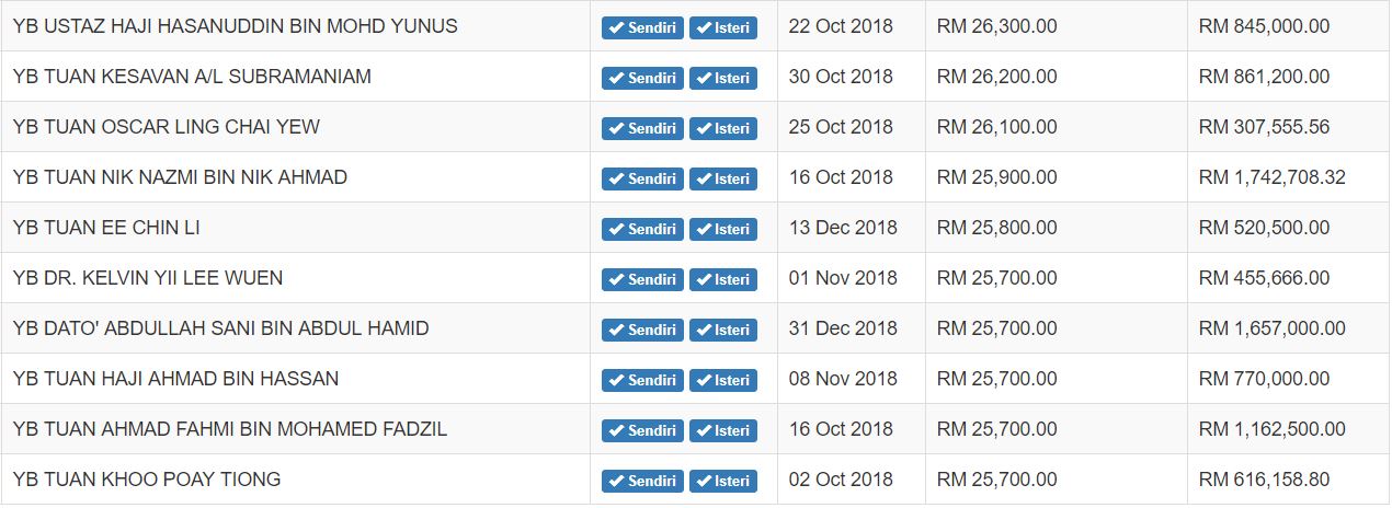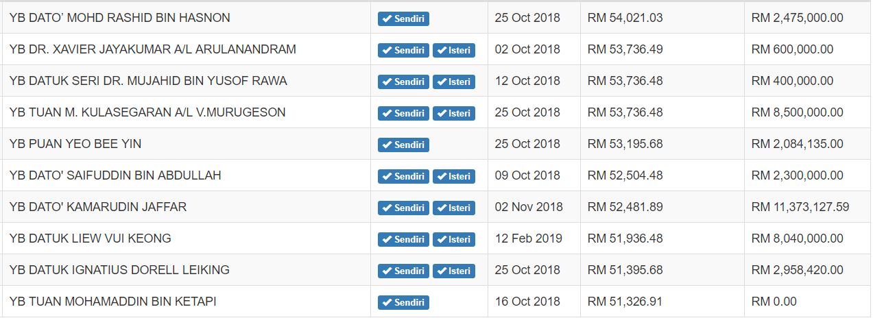 Senarai penuh pendapat bulanan MP PH. Mukhriz juara, RM 105k sebulan