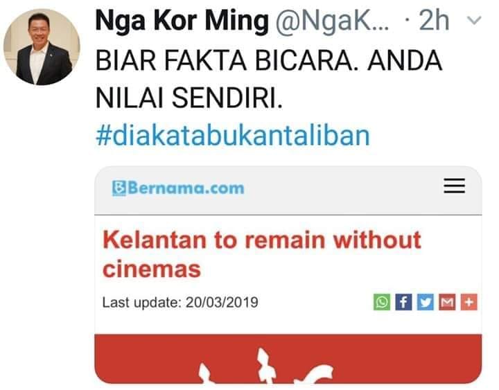 1) Sifir Nga Kor Ming, tak ada Cinema terus label Taliban. Isu cinema ni zaman TG Nik Aziz jadi MB lagi. Bukan tak benarkan, tetapi pihak cinema gagal patuh syarat lesen - asingkan lelaki dan perempuan serta yang berkeluarga.