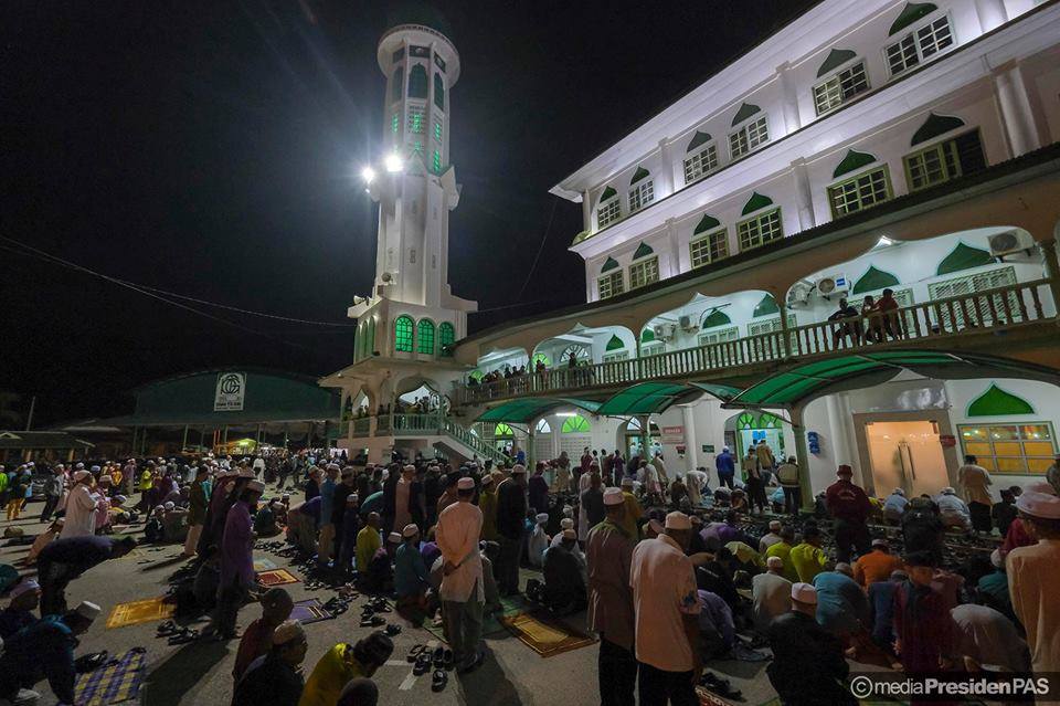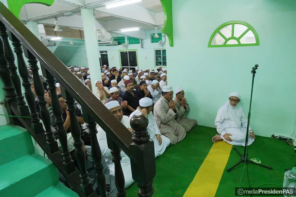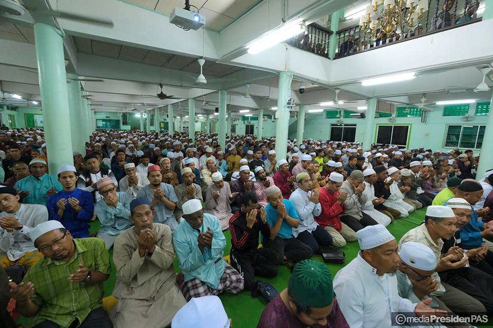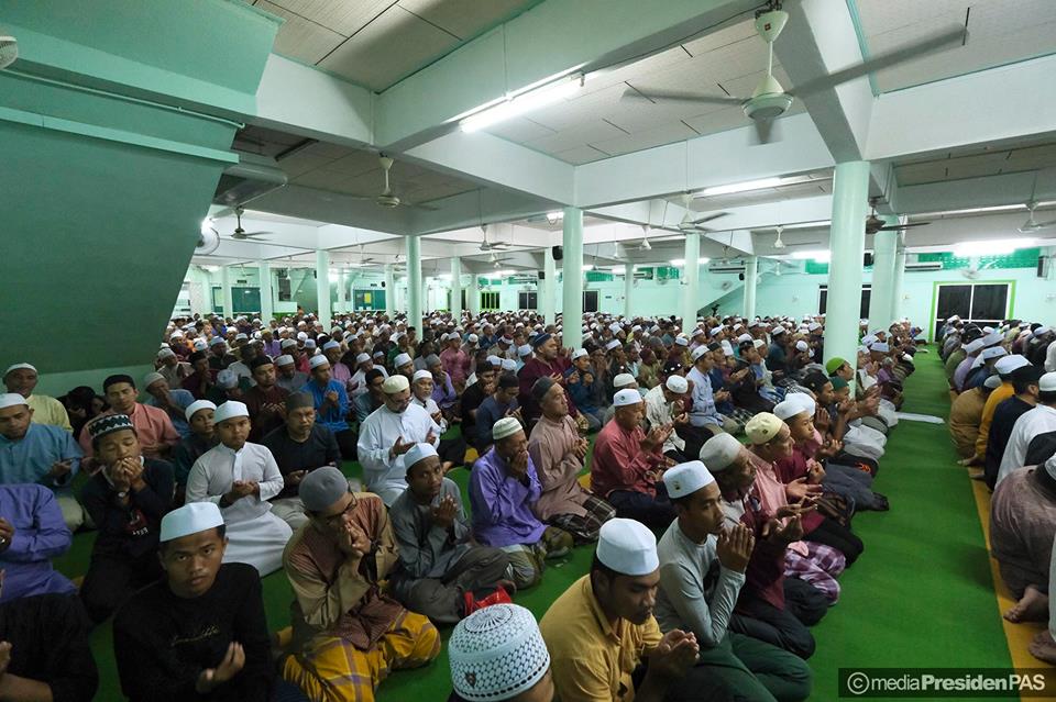 Suasana MUNAJAT & SOLAT HAJAT PERDANA PERINGKAT NEGERI TERENGGANU di Masjid Rusila yang dipimpin sendiri oleh Dato' Seri Tuan Guru Presiden PAS.