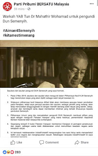 Mahathir berkata, PRK DUN Semenyih tidak membawa perubahan kepada kerajaan, tetapi percaya pengundi matang dan akan memilih wakil rakyat yang bersih, cekap, amanah dan berintegriti untuk memberi khidmat.