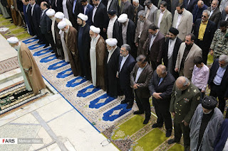 Hanya puak syiah solat dibelakang imam syiah. Umat Islam dilarang solat di belakang imam syiah kerana fatwa telah menyatakan dengan jelas bahawa syiah sesat lagi menyesatkan.