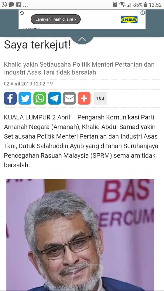 KUALA LUMPUR 2 April - Pengarah Komunikasi Parti Amanah Negara (Amanah), Khalid Abdul Samad yakin Setiausaha Politik Menteri Pertanian dan Industri Asas Tani, Datuk Salahuddin Ayub yang ditahan Suruhanjaya Pencegahan Rasuah Malaysia (SPRM) semalam tidak bersalah.