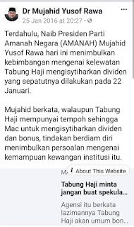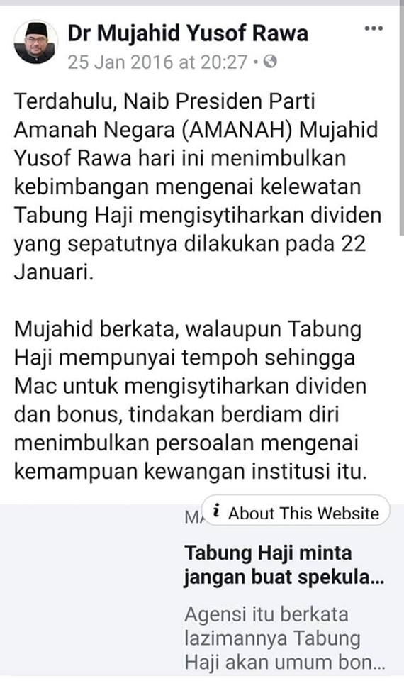 Ini jelas dapat dilihat daripada apa yang berlaku kepada Mujahid Rawa. Sekarang dia sudah jadi Menteri dan Tabung Haji bawah seliaan beliau. Apa dia buat??