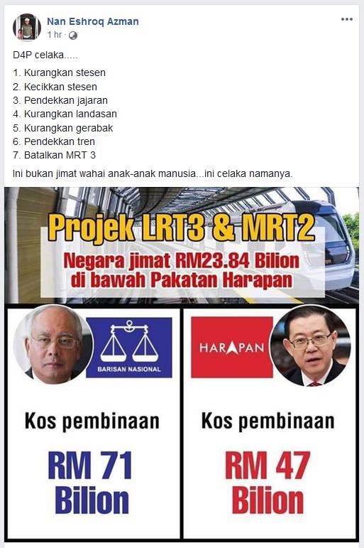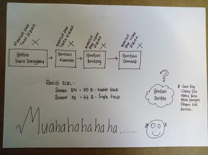 Kerajaan Pakatan Harapan kata dapat menjimatkan sekitar RM21 bilion kos ECRL Pantai Timur. Mereka kata jimat walhal realiti yang sebenar jimat yang mereka maksudkan itu adalah membatalkan faedah dan manfaat yang bakal diperolehi rakyat pantai timur.