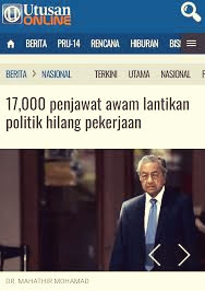 Selepas berjaya membentuk kerajaan, antara perkara pertama yang kerajaan PH lakukan ialah membuang 17,000 penjawat awam yang berstatus kontrak atas alasan lantikan mereka adalah lantikan politik...