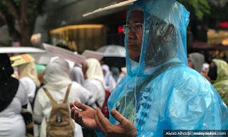 Selain itu kelihatan peniaga kecil tidak melepaskan peluang menjual baju hujan kepada peserta perhimpunan.