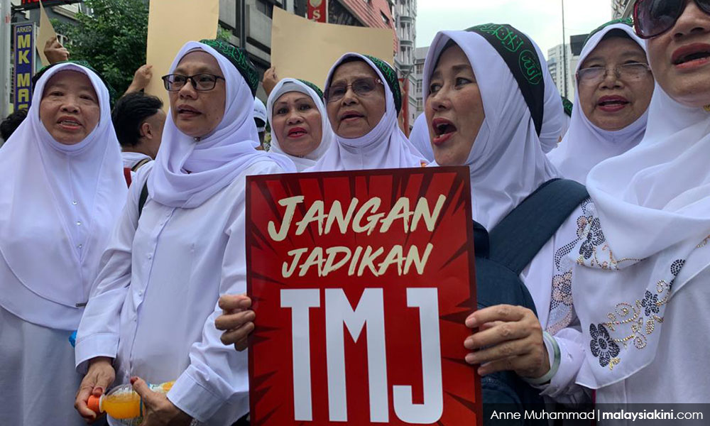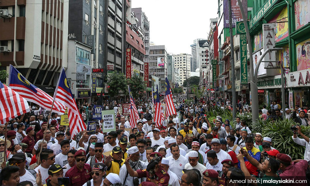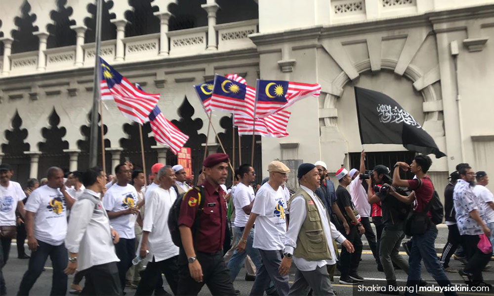 “(Ada) kata raja Melayu perompak, dalam forum itu ada Peguam Negara Negara Tommy Thomas. Kita mesti desak Tommy Thomas letak jawatan. Dia tak layak jadi peguam negara, dia biarkan raja Melayu dihina,” katanya sambil disambut sorakan “Allahuakbar”.