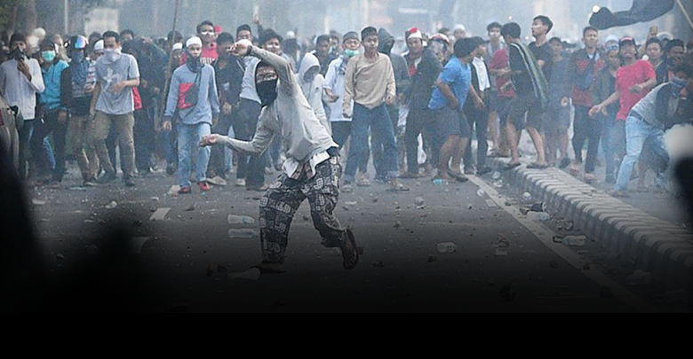 Kejadian rusuhan itu berlaku di sekitar Jakarta antara jam 11 malam tadi sehingga jam 5 pagi tadi, dengan kelompok perusuh berkenaan melontarkan batu, ‘molotov coctail’ dan mercun ke arah pasukan keselamatan yang meminta mereka bersurai.