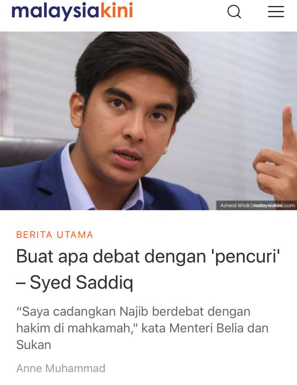 MR : Yang bodoh dan Mentah Syed Saddiq