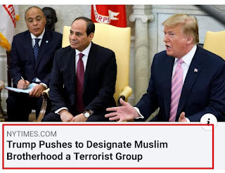 1. The New York Times melaporkan bagaimana Presiden Trump mendesak Mesir supaya mengisytiharkan Ikhwan Muslimin sebagai gerakan pengganas. Label sebegini adalah senjata saraf bagi memburukkan imej gerakan Islam. Di Malaysia, pendakwah digelar sebagai Taliban, penghasut atau lebai bagi membina imej negatif buat mereka.