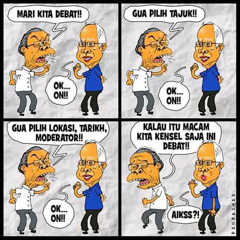 Dia yg cabar Najib, dia yang tarik diri setelah segala syarat dipersetujui oleh Najib. Jenis muka tak malu dan jenis ayam kokok berdegar-degar ekor bergelumang tahik! -Hamdan Ahmad