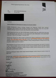 Bagaimanapun 30hb Mei adalah hari bekerja terakhir untuk 135 staff FELDA Engineering Services Sdn Bhd dan FELDA Properties Sdn Bhd.