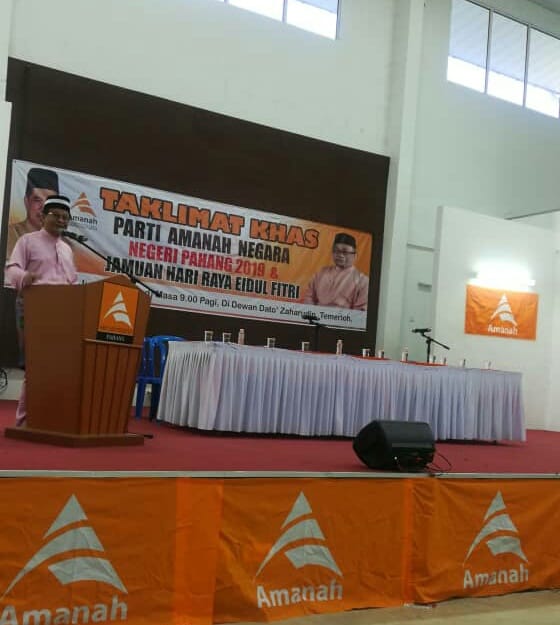 Tadi saya Menghadiri Taklimat Khas dan Majlis Jamuan Hari Raya Amanah Phg bertempat di Temerloh .. Ringkaskan cerita semasa MP Temerloh (SUA) berucap beliau mencerita dari awal penubuhan Amanah bertapa pahit maung nya pemimpin dan ahli bekerja, ada yg tak tidur malam ada yang menyumbang tenaga dan wang ringgit utk menghidupkan Amanah dan macam macam kesah sehingga ke PRU baru ini.