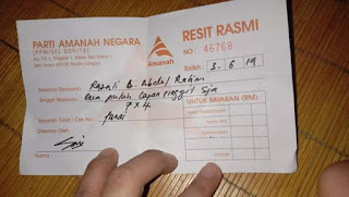 Tapi yang bayar zakat kpd pan ni kira kok mana???...nak kata depa berjuang agama, layak ka depa dikategorikan demikian???...ni resit zakat diterima oleh parti pan, walaupun tak ada tulis perkataan zakat, tapi ambik faham laaa bila ditulis 7 x 4 atau RM7 darab 4 orang dan jumlanya RM28...