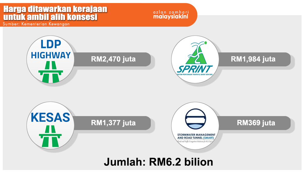 "Bagi memastikan ketelusan, saya harap Kementerian Kewangan boleh menggariskan dengan lebih jelas apa sebenarnya RM6.2 bilion itu, jika bukan untuk mengambil alih konsesi," katanya.