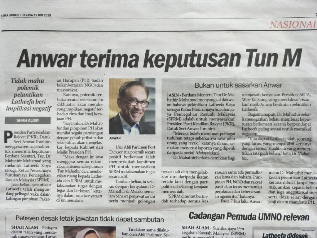 Lepas ni madey makin naik tocang laaa...dia cukup kenal Melayu spt anwar dan gerombolannya yg saling tak tumpah spt "Melayu mudah lupa"...anwar pulak dah cukup pengalaman dan serik melawan madey...agaknya tak sanggup lagi "menang jadi arang, kalah jadi abu"...maka, terima saja laaa...yg penting asalkan dapat kuasa walau di hujung usia...yg sorang lagi pulak, mahu terus berkuasa kerana sudah di hujung usia...dua-dua mahu mati dgn kuasa agar nama disebut dunia...