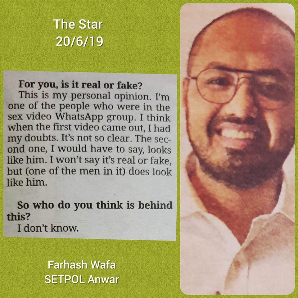 SETPOL DS Anwar Ibrahim yang didakwa terlibat dengan pengedaran video lucah baru-baru ini, Sdr Farhash Wafa Salvador Rizal Mubarak memberi pendedahan berani dalam akhbar The Star hari ini.