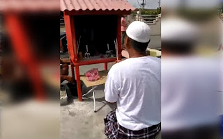 Pada 7 Jun lalu, tular rakaman video sepanjang 15 saat menunjukkan seorang lelaki memakai kain pelikat dan berkopiah melakukan pemujaan di sebuah tokong kecil di kawasan perumahan di Tanjung Piandang di sini.