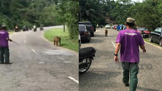 Ayoh Wang yang berusia lingkungan 60-an didakwa sebagai individu yang menghalau harimau berkenaan masuk semula ke hutan bagi mengelakkan kejadian tidak diingini berlaku.