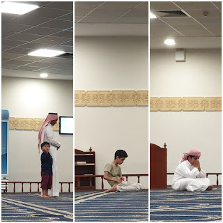 Sehingga ketika bulan ramadan tahun yang lepas aku pernah menyaksikan seorang arab bersama anaknya solat ketika taraweh. Ketika malam semakin lanjut. Jelas pada riak wajah anaknya keletihan dan mengantuk. Maka anaknya yang disisinya diangkat arab tersebut kemudian diletakkan dibahagian sujudnya untuk anaknya tidur.