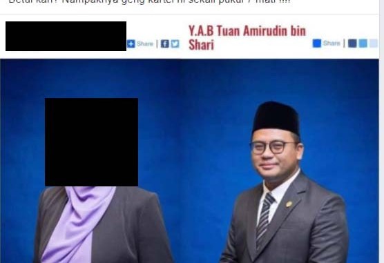 Laman tersebut menaikkan hantaran berikut dengan menyertakan gambar MB Selangor dan adun wanita PKR terbabit :