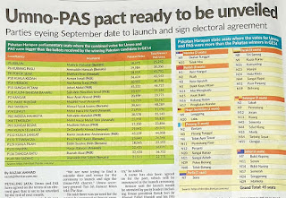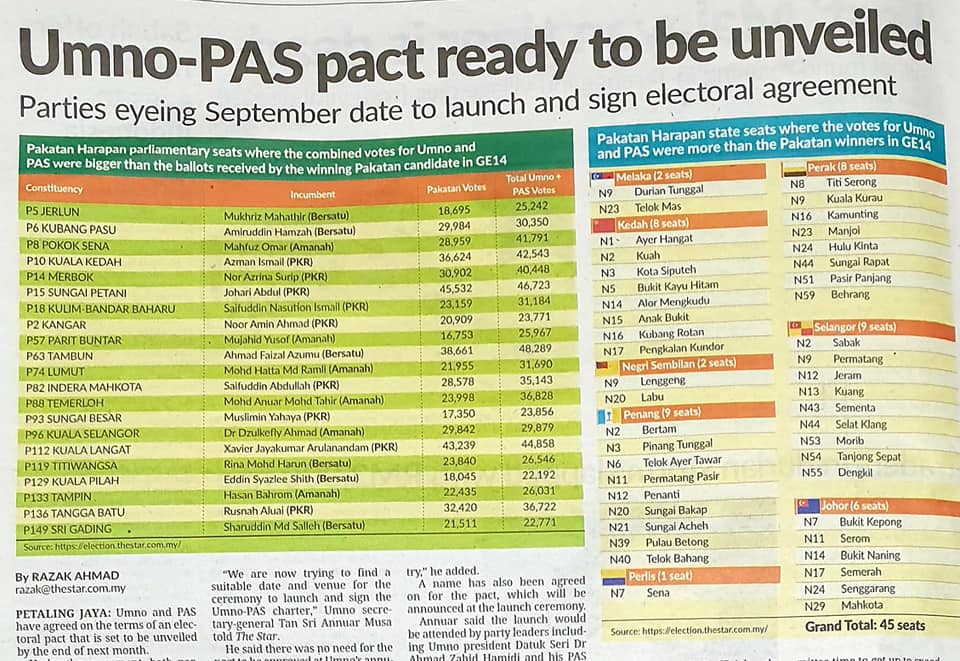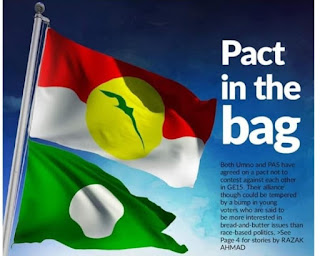 Ketika media arus perdana yang lain sibuk dan tertumpu pada isu perebutan kuasa dalam PER dan PH lanjutan isu video songsang, akhbar The Star hari ini memilih untuk memberi fokus pada isu muafakat politik PAS dan Umno serta kesannya pada PRU akan datang.