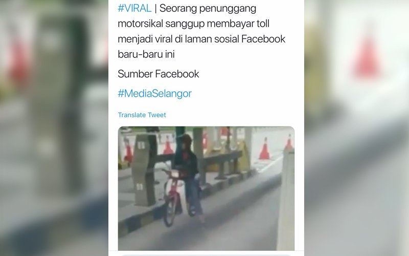 Tular di laman sosial Facebook dan Twitter apabila penunggang motosikal tersebut turut beratur di tol dan menariknya, dia membayar tol itu menggunakan kad Touch N Go.