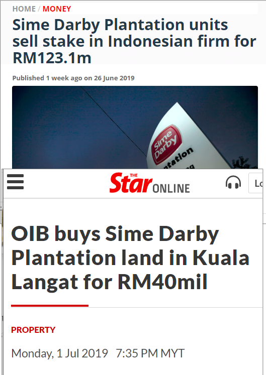 Minggu lepas, Sime Darby juga menjual tanah hakmilik bebas sebesar 105 ekar mereka di Kuala Langat, Selangor dengan harga RM40 juta atau harga RM8.08 untuk setiap kaki persegi.