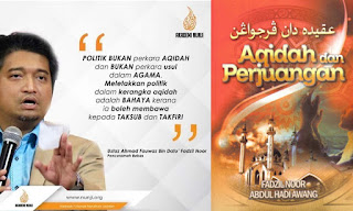 Terbaca poster seorang anak almarhum Presiden PAS. Katanya politik bukan perkara usul dan tak boleh diletakkan dalam kerangka akidah.