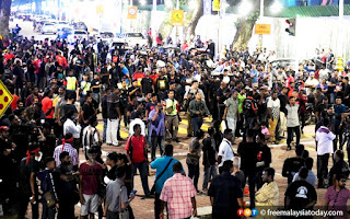 Penunjuk perasaan berhimpun bagi membantah kaligrafi walaupun polis petang tadi memberi amaran tindakan akan diambil kerana penganjur tidak memenuhi Akta Perhimpunan Aman (APA).