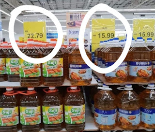 Cuba kita pikiaq, beza harga yg ditawarkan amat jauh antara kedua2 jenama...iaitu sebanyak RM6.80 dan hampir bersamaan dgn 1.5kg minyak jenama Saji...apakah faktor2 yg boleh membawa penawaran harga serendah itu???...