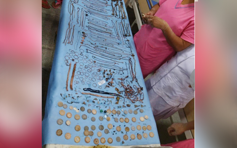 Ketika dibedah, doktor mengeluarkan 60 utas rantai, 80 bentuk anting-anting, 46 keping duit syiling, 8 loket, 11 anting-anting hidung, 4 kunci, 5 rantai kaki dan 1 jam daripada perut pesakit.