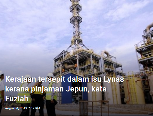 Tapi, apa yang Fuziah tak sebut ialah kerajaan PH telah menerima bayaran RM175 juta dari Lynas baru-baru ini.