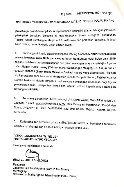 BalasPadamperlu diselesaikan segera permasalahan ini, kerana takut akan memudaratkan masjid/surau di pulau pinang apabila ramai dari ummat islam yg kini mula teragak-agak nak menderma kerana takut disonglap oleh orang yg tak sepatutnya.