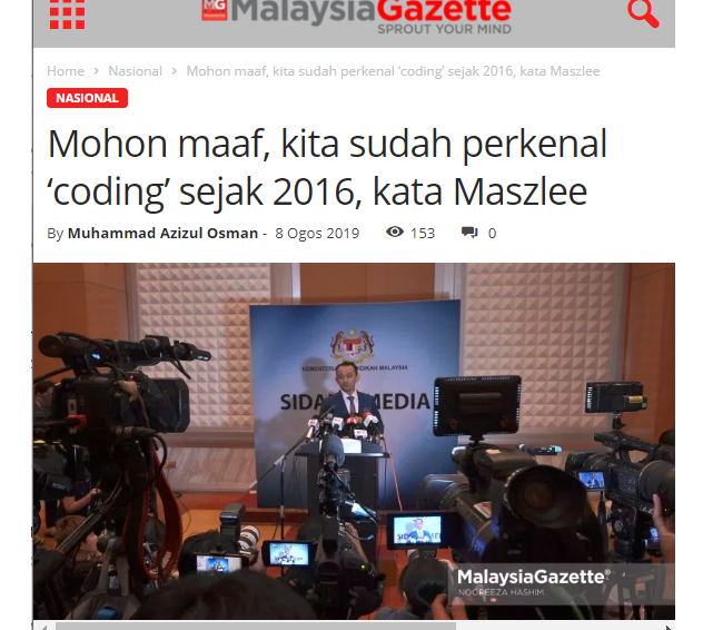 Ramai mungkin tidak tahu tentang pengajaraan koding ini tapi berita ini telah diumumkan beberapa kali oleh pelbagai pihak pada masa itu.