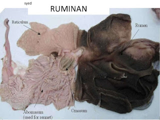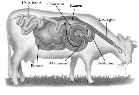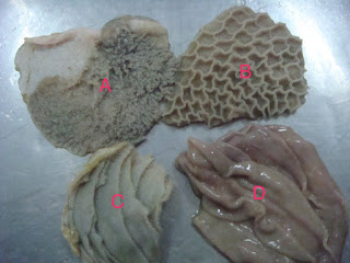 Perut lembu ada empat: rumen, retikulum, omasum, dan obamasum. Setiap perut ini bentuk dan tekstur dalaman dia lain-lain. Rujuk gambar!