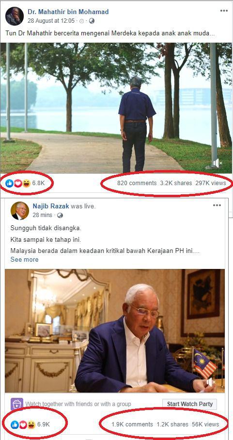 Mahathir membuat video ekslusif sedangkan DS Najib Razak hanya membuat ucapan di telefon bimbitnya.