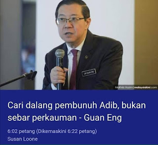1) Cari pembunuh Adib, bukan cari dalang pembunuh Adib. Kalau cari dalang pembunuh memang tak akan jumpa lah. Adib terbunuh dek amarah dan emosi yang tidak terkawal dalam rusuhan yang diapi-apikan. Tak ada dalang yang suruh bunuh Adib.